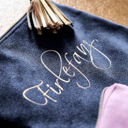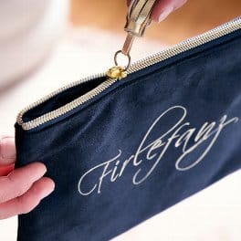 Hochwertiges Samtmäppchen von Werner Voss. Wunderschön verarbeitet mit einer kleinen goldenen Quaste am Reißverschluss.
